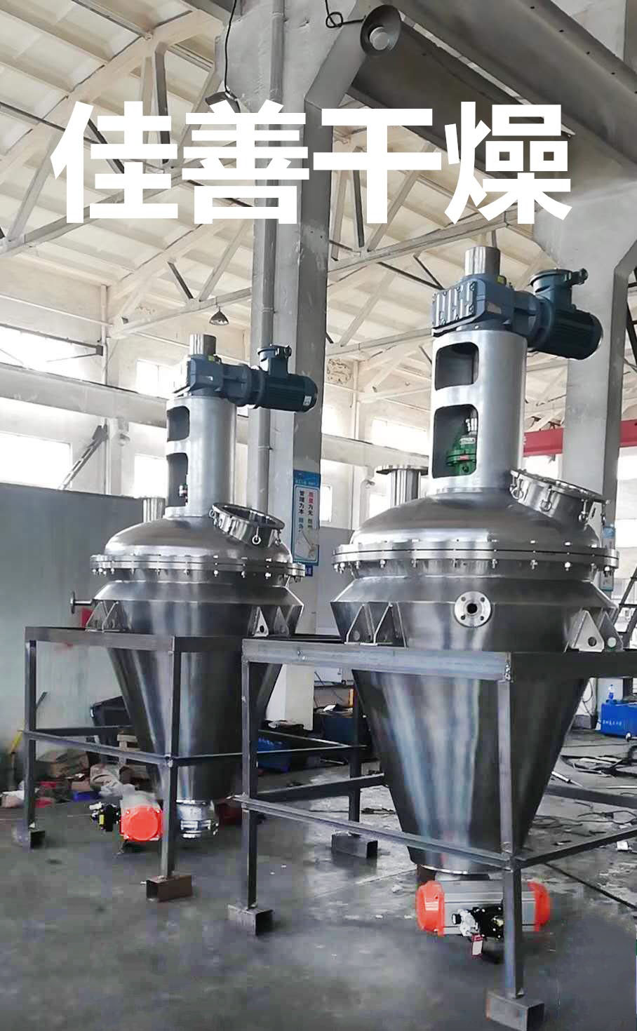锥形螺带混合/干燥机装填率为有效工作容积的30%—100%,在此范围内不同装料量的混合和干燥都可以得到一致的结果。